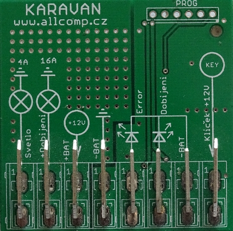 - bezkontaktní spínání – pro spínání dobíjení je použit elektronický prvek PROFET, který obsahuje tepelnou i nadproudovou ochranu obvodu. To znamená, že při přetížení nebo zkratu automaticky sníží výkon a tím nedojde k přepálení pojistky